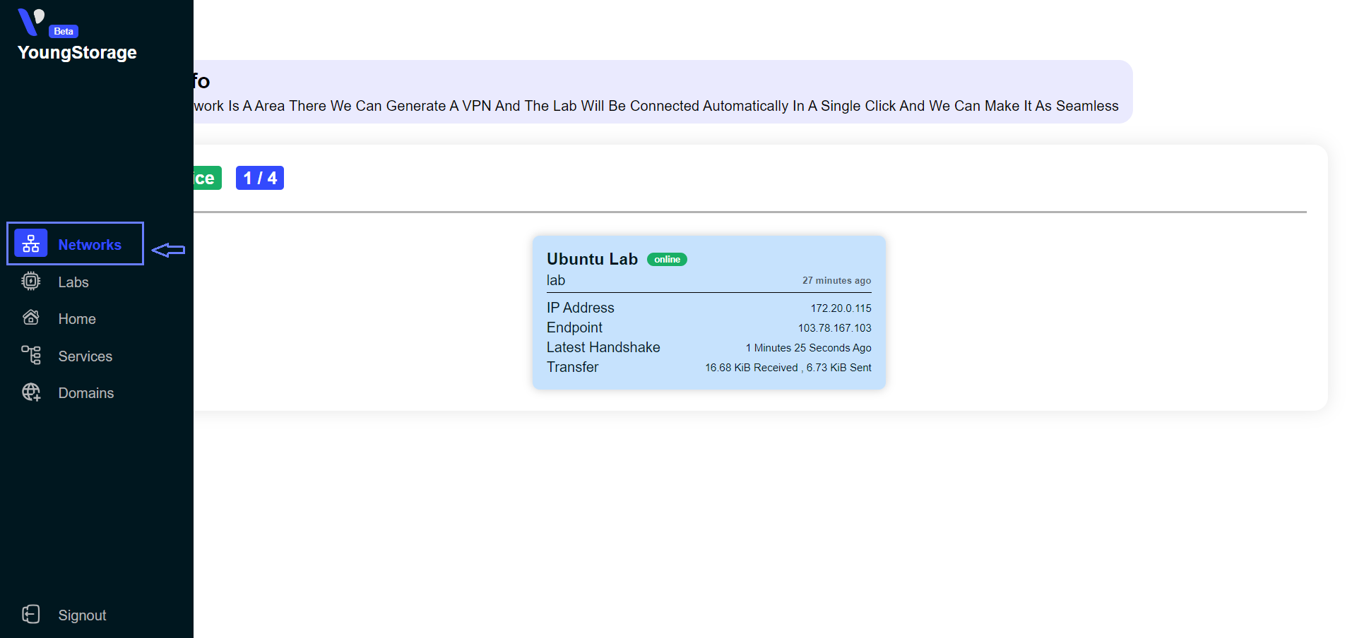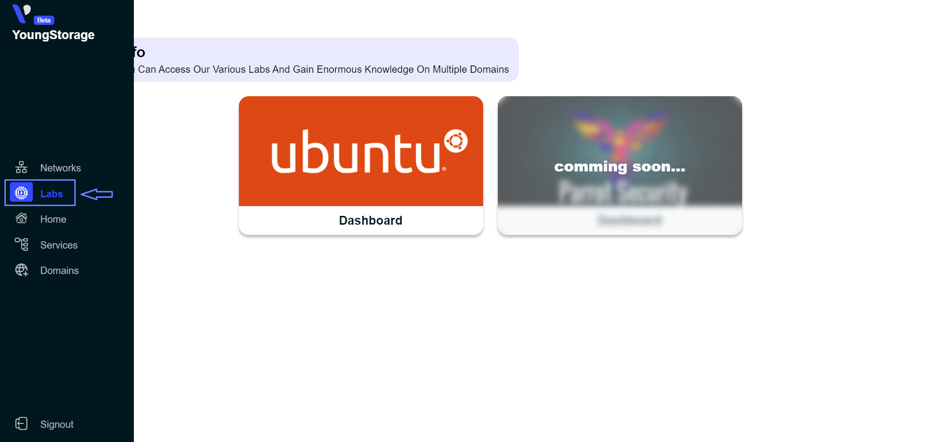 Log into labs.youngstorage.in with your account credentials.